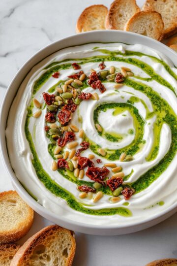 Creamy Ricotta with Basil Oil and Pine Nuts Recipe