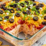 - Prepare the base layer: Spread the refried beans evenly as the first layer in a large serving dish, ideally an 8-inch square glass dish.