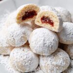 These Filled Almond Snowball Cookies are delicate, buttery treats featuring a soft almond cookie dough filled with sweet raspberry jam and coated in powdered sugar for a snowy finish. Perfect for gifting or holiday gatherings, these cookies offer a delightful combination of nutty flavor and fruity sweetness.