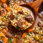 A hearty and comforting Beef Barley Soup made with tender beef chuck, pearl barley, fresh vegetables, and a rich broth infused with red wine and herbs. Perfect for a nourishing meal any day.