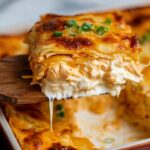 This Buffalo Chicken Lasagna combines the spicy tang of buffalo sauce with creamy ricotta and sharp cheddar cheeses layered between tender lasagna noodles and crispy breaded chicken strips. Finished with a rich béchamel sauce and topped with melted mozzarella and blue cheese, this dish offers a flavorful twist on traditional lasagna perfect for gatherings or a hearty weeknight meal.
