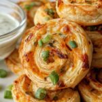Buffalo Chicken Pinwheels are a delicious and easy-to-make appetizer featuring a spicy buffalo chicken filling wrapped in flaky puff pastry. Perfect for game day or parties, these pinwheels combine shredded chicken, buffalo sauce, cream cheese, Greek yogurt, mozzarella, and seasonings baked to golden perfection.