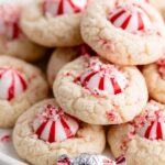Candy Cane Kiss Cookies are festive peppermint-flavored sugar cookies topped with a classic Hershey’s Candy Cane Kiss. These soft, buttery treats feature crushed candy canes folded into the dough for a subtle minty crunch and are perfect for holiday celebrations.