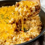 A comforting and cheesy skillet dish featuring ground beef, rice, and a blend of flavorful cheeses cooked together with tomatoes and spices for a quick and satisfying meal.