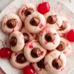 Delight in these charming Cherry Blossom Cookies, featuring a soft, buttery dough infused with maraschino cherry juice and almond extract. Each cookie is topped with a sweet Hershey’s Kiss, making them perfect for festive occasions or a sweet treat any time of the year.