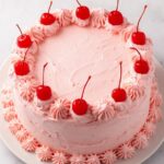 - Garnish: Decorate the cake with the reserved whole maraschino cherries on top.