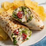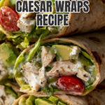 This Chicken Caesar Wrap recipe combines tender chopped rotisserie or grilled chicken with crisp Romaine lettuce, juicy grape tomatoes, creamy avocado, and a tangy homemade Caesar dressing made with Greek yogurt and anchovies. Wrapped in soft tortillas, this fresh and flavorful meal is perfect for a quick and satisfying lunch or dinner.