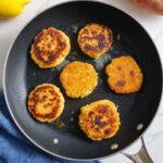 - Shape and Cook: Form small patties using about 2 to 3 tablespoons of the mixture each. Heat olive oil in a nonstick pan over medium heat and cook the patties for 3 to 4 minutes per side until golden and cooked through. Alternatively, bake in a preheated oven at 400°F (200°C) for 25 minutes or air fry at 375°F (190°C) for 12 minutes, flipping halfway through.