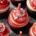 Delight in these festive Chocolate Peppermint Cupcakes featuring a rich, moist chocolate base infused with peppermint extract and topped with a creamy peppermint buttercream frosting. Perfect for holiday celebrations or any special occasion, these cupcakes combine classic chocolate flavor with a refreshing peppermint twist and festive red and white swirled frosting adorned with peppermint chunks and candy canes.