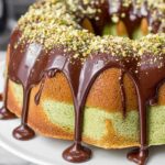 This Pistachio Bundt Cake with Chocolate Ganache is a soft, moist, and deliciously moist cake perfect for St. Patrick's Day or any special occasion. The cake features a subtle pistachio flavor enhanced with almond extract and green food coloring for a festive touch. It's topped with a rich chocolate ganache and chopped pistachios for a delightful finish.