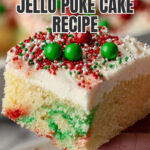 - Decorate and Serve: Before serving, sprinkle red and green holiday sprinkles or decorations on top. Slice and enjoy your festive Christmas poke cake!