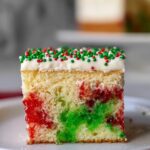 - Decorate and Serve: Before serving, sprinkle red and green holiday sprinkles or decorations on top. Slice and enjoy your festive Christmas poke cake!
