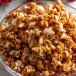 Christmas Popcorn Candy is a festive, sweet treat featuring crunchy popcorn coated with a spiced caramel glaze and slivered almonds. This recipe combines warm holiday spices like cinnamon, ginger, allspice, and cloves to create a flavorful snack perfect for the holiday season. The popcorn is coated in a buttery caramel, baked to crisp perfection, and makes a delightful gift or party snack.