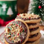 - Decorate Cookies: Spread melted chocolate over the cooled cookies, then sprinkle with toasted pecans, reserved toffee bits, and holiday sprinkles. Let chocolate set before serving.
