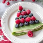 Delight in these festive Christmas Tree Crepes topped with a luscious gingerbread spice whipped cream. Perfectly thin and sweet crêpes are folded into tree shapes and layered with a spiced whipped cream, fresh berries, and a dusting of powdered sugar for a whimsical holiday breakfast or dessert.