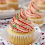 These festive Little Debbie Christmas Tree Cupcakes combine moist vanilla cupcakes with a creamy cream cheese frosting blended with crushed Little Debbie Christmas Tree Cakes. Finished with a tall frosting swirl, red drizzle, and green sanding sugar, they’re perfect for holiday celebrations and make for a fun and delicious dessert.