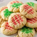 - Create Pattern and Add Sugar: Using a fork, gently press down on each dough ball to create a crisscross pattern on the top. Sprinkle generously with red and green sanding sugar for a festive finish.