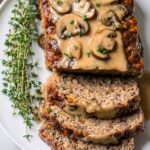- Serve: Slice the rested meatloaf and serve warm with the brown mushroom gravy poured over the top.