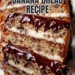 This banana bread is already decadent with its cookie dough base and chocolate glaze, so I like to keep garnishes simple yet charming. Try sprinkling a few extra mini chocolate chips or a light dusting of powdered sugar on top just before serving. For a little texture contrast, toasted chopped walnuts or pecans work beautifully as well.