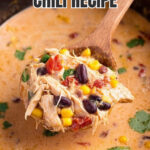 Crack Chicken Chili is a creamy, flavorful, and comforting dish combining tender bite-sized chicken pieces with beans, tomato sauce, and cream cheese, seasoned with aromatic spices. Topped with sharp cheddar, green onions, and cilantro, it's perfect for an easy weeknight meal or meal prepping.