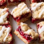 These Cranberry Crumble Bars feature a buttery shortbread crust, tangy cranberry filling, and a sweet vanilla glaze topping. Perfect for a festive dessert or snack, combining the refreshing tartness of cranberries with a buttery, crumbly texture.