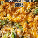 I fold in half the cheddar and all the Parmesan to melt into the sauce gently, then stir in the cooked pasta, broccoli, and chicken. Transferring everything to a casserole dish, I top with the remaining cheddar, cover and bake, then finish with crispy onions for that golden crunch.