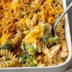 - Add Crispy Topping and Finish Baking: Remove the foil and evenly distribute 1 cup crispy fried onions over the top. Return to the oven and bake uncovered for an additional 8-10 minutes until onions turn golden and the cheese is bubbly. Serve warm.