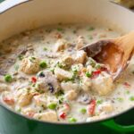 Chicken a la King is a creamy, flavorful dish featuring tender chicken simmered in a rich sauce made with mushrooms, onions, peas, and pimentos, finished with a touch of white wine and seasonings. Perfectly served over egg noodles, rice, or biscuits for a comforting and satisfying meal.