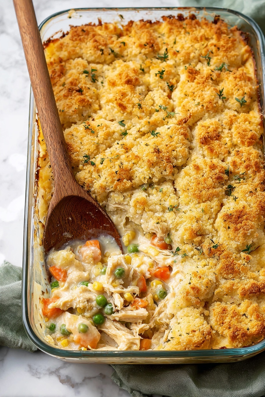 This Chicken Pot Pie Casserole combines tender chicken, hearty vegetables, and a creamy filling topped with a rustic biscuit crust. It’s a comforting, homestyle dish perfect for a family dinner, offering rich flavor and satisfying textures in every bite.