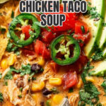 A rich and flavorful Creamy Chicken Taco Soup packed with tender chicken, black beans, corn, fire-roasted tomatoes, and a blend of spices. Topped with sharp cheddar, cream cheese, cilantro, and lime juice for a comforting and hearty meal perfect for any occasion.