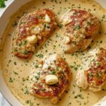 This Creamy Garlic Chicken recipe features tender, golden-brown chicken breasts smothered in a rich and flavorful garlic cream sauce. Perfect for an easy yet impressive dinner, it's made with simple ingredients like garlic, heavy cream, chicken broth, and Italian seasoning, cooked in a skillet for a delicious stovetop meal.