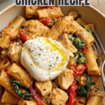 This Creamy Tomato Pesto Pasta with Chicken is a delightful Italian-inspired dish featuring al dente rigatoni tossed in a rich, creamy tomato pesto sauce with tender seared chicken, roasted red peppers, fresh spinach, and topped with creamy burrata cheese for an indulgent finish.