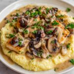 This recipe stands beautifully with just mashed potatoes, but I love pairing it with a crisp green salad or roasted seasonal veggies like asparagus or brussels sprouts. A crusty loaf of bread is also perfect for mopping up the extra creamy sherry sauce.