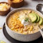 This White Chicken Chili recipe is a creamy, flavorful dish made with shredded chicken, white beans, corn, and a blend of spices. It features a smooth texture achieved by blending part of the chili and the addition of cream cheese, making it a perfect comforting meal for chilly days.
