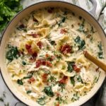 This creamy White Lasagna Soup combines tender shredded chicken, sun-dried tomatoes, fresh spinach, and broken lasagna noodles in a flavorful, cheesy broth. It's an easy and comforting one-pot meal that brings the flavors of classic lasagna into a warm, satisfying soup perfect for any day.