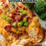 Once baked, let the chicken rest for a few minutes to lock in the juices. Then, sprinkle the remaining 2 tablespoons of sliced green onions and 2 tablespoons of slivered almonds over the top for a fresh, crunchy finish. Serve hot with your favorite sides, and enjoy every creamy, crispy, cheesy bite of this Crispy Bacon Cheesy Chicken Bake Recipe!