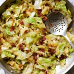This easy fried cabbage recipe is a deliciously flavorful side dish featuring crispy bacon, sautéed onion, garlic, and a hint of smoky paprika combined with stone ground mustard. Perfectly tender and slightly caramelized cabbage makes it a warm and comforting addition to any meal.