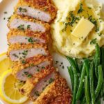 Crispy and flavorful breaded pork chops baked to perfection on a sheet pan, seasoned with a zesty breadcrumb mixture and served with fresh lemon wedges for a bright finish. This easy recipe delivers juicy pork chops with a crunchy crust, perfect for a quick weeknight dinner or a casual meal with family.