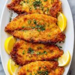 This Chicken Schnitzel recipe features tenderized, breaded chicken breasts fried to golden, crispy perfection. It is seasoned with salt, pepper, and Dijon mustard, coated in flour, eggs, and panko breadcrumbs, then pan-fried until crunchy and delicious. Serve with lemon wedges and Dijon mustard for a classic and satisfying meal that pairs beautifully with mashed potatoes.