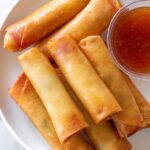 These crispy homemade spring rolls feature a flavorful chicken and mushroom filling wrapped in delicate flour-based wrappers. Perfectly fried or air-fried for lighter crispiness, they are served with a sweet and tangy dipping sauce combining honey, oyster sauce, and Korean chili paste. Ideal as an appetizer or snack, these spring rolls deliver a satisfying crunch and balanced flavors.