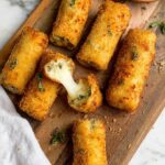 - Serve: Serve the crispy fried lasagna rolls hot, optionally with a side of warm marinara tomato sauce for dipping. Enjoy as a delicious appetizer or snack packed with creamy, cheesy goodness and crunchy texture.
