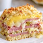 This Reuben Casserole is a hearty, crowd-pleasing dish that layers rye bread, pastrami, sauerkraut, Swiss cheese, and a special sauce, recreating the classic Reuben sandwich experience in a warm, comforting casserole form.
