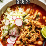 This easy chicken pozole recipe is a flavorful slow-cooked Mexican stew featuring tender chicken breasts simmered with authentic red enchilada sauce, hominy, and traditional spices. It’s a comforting one-pot meal perfect for gatherings, topped with fresh cabbage, cilantro, lime, radishes, and more for a customizable and vibrant finish.