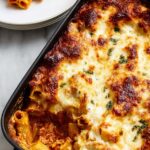 Mix the cooked rigatoni with your hearty meat sauce, then pour everything into your prepared baking dish. Using a spoon, dollop the ricotta mixture evenly into six mounds over the top. Don’t worry about perfect spreading; those pockets make it even better. Give the casserole a few gentle stirs to swirl some ricotta into the pasta, and finish by sprinkling the remaining mozzarella cheese over the top.