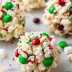 Delightfully festive Christmas Popcorn Balls made with buttery melted marshmallows, colorful red and green M&M candies, and cheerful sprinkles. These sweet, chewy treats are perfect for holiday gatherings and easy to prepare with simple ingredients.