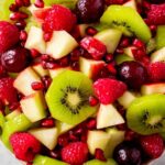 A fresh and vibrant Easy Christmas Fruit Salad featuring a mix of apples, grapes, pomegranate, kiwis, raspberries, and a honey-lime dressing. Perfect for festive gatherings or a healthy snack.