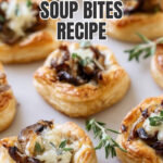 Delicious French Onion Soup Bites featuring caramelized sweet onions, melted Gruyere cheese, and flaky puff pastry, perfect as an elegant appetizer or snack for gatherings.