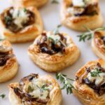 Delicious French Onion Soup Bites featuring caramelized sweet onions, melted Gruyere cheese, and flaky puff pastry, perfect as an elegant appetizer or snack for gatherings.