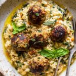 - Assemble and Serve: Serve the garlic butter chicken meatballs over the creamy orzo mixture, ensuring to spoon some of the flavorful sauce over the dish for the best taste and presentation.