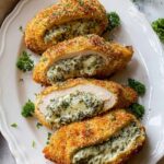 Delicious Garlic Herb Stuffed Chicken breast filled with a creamy mixture of cream cheese, garlic, and fresh herbs, coated with seasoned panko breadcrumbs, and baked to perfection for a flavorful and satisfying dinner.
